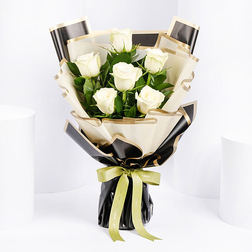 6 White Roses