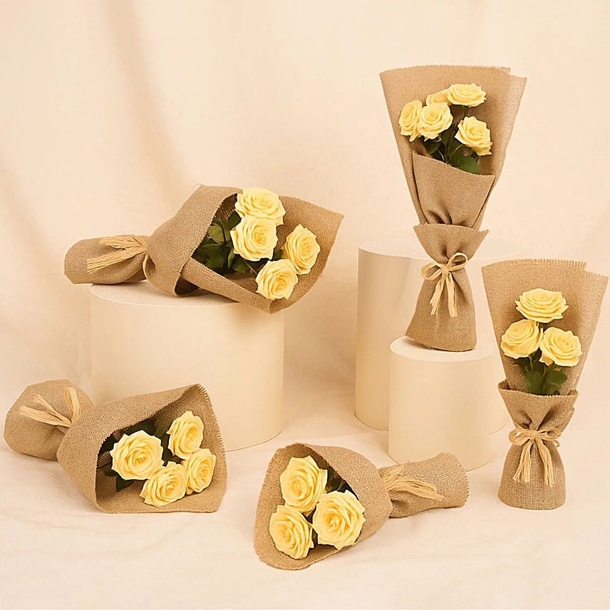 Celebrate Teacher’s Day with elegance and warmth through this stunning set of five spray rose bouquets. Featuring clusters of delicate yellow spray roses wrapped in rustic jute fabric and tied with a natural twine bow, these bouquets are a heartfelt way to honor the dedication, love, and inspiration of teachers